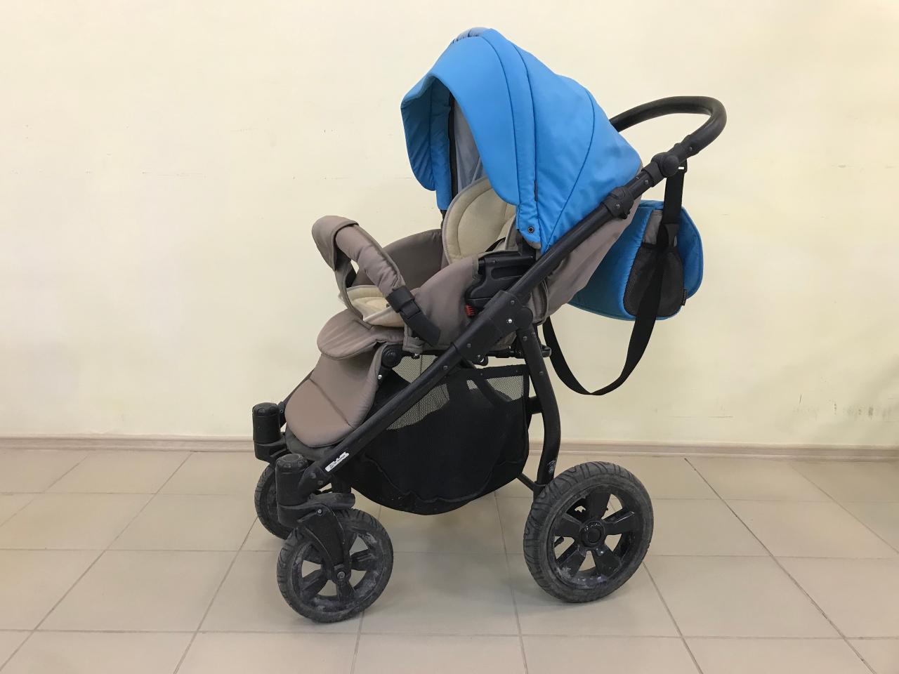 - Модульная коляска известного литовского бренда. Большие надувные колёса, передние - поворотные с фиксацией. Ручка регулируется. Шасси складное. Цвет: голубой с серым. Полный комплект, исправна. Цена