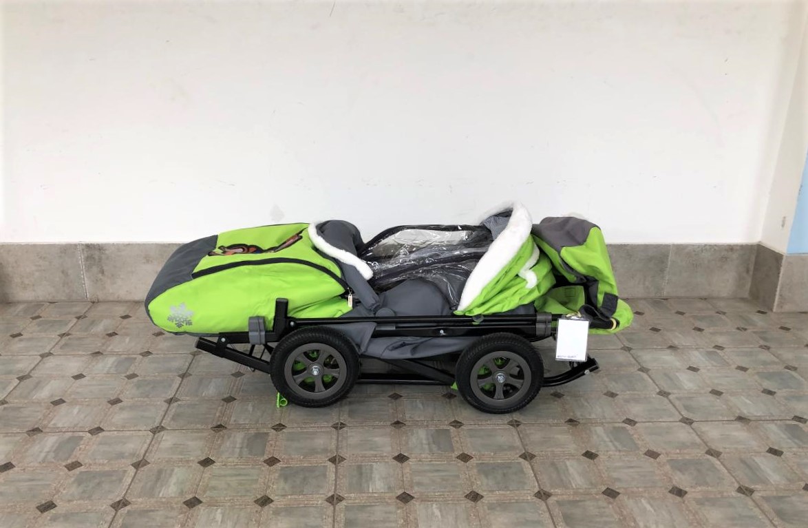 - Популярные санки-коляска красивого оливкового цвета с меховой отделкой. Выполнены из плотной мембранной ткани, ветронепроницаемого и водоотталкивающего текстиля высокого качества. Выдвижная колесная база и дополнительные колесики на полозьях. Объёмный капюшон с меховой окантовкой и прозрачным тентом для дополнительной защиты Вашего ребенка от ветра и снега. Регулируемые спинка и подножка. Теплый чехол на ножки с двумя удобными молниями-застежками. Сумка для мамы и меховые варежки в комплекте. Цена