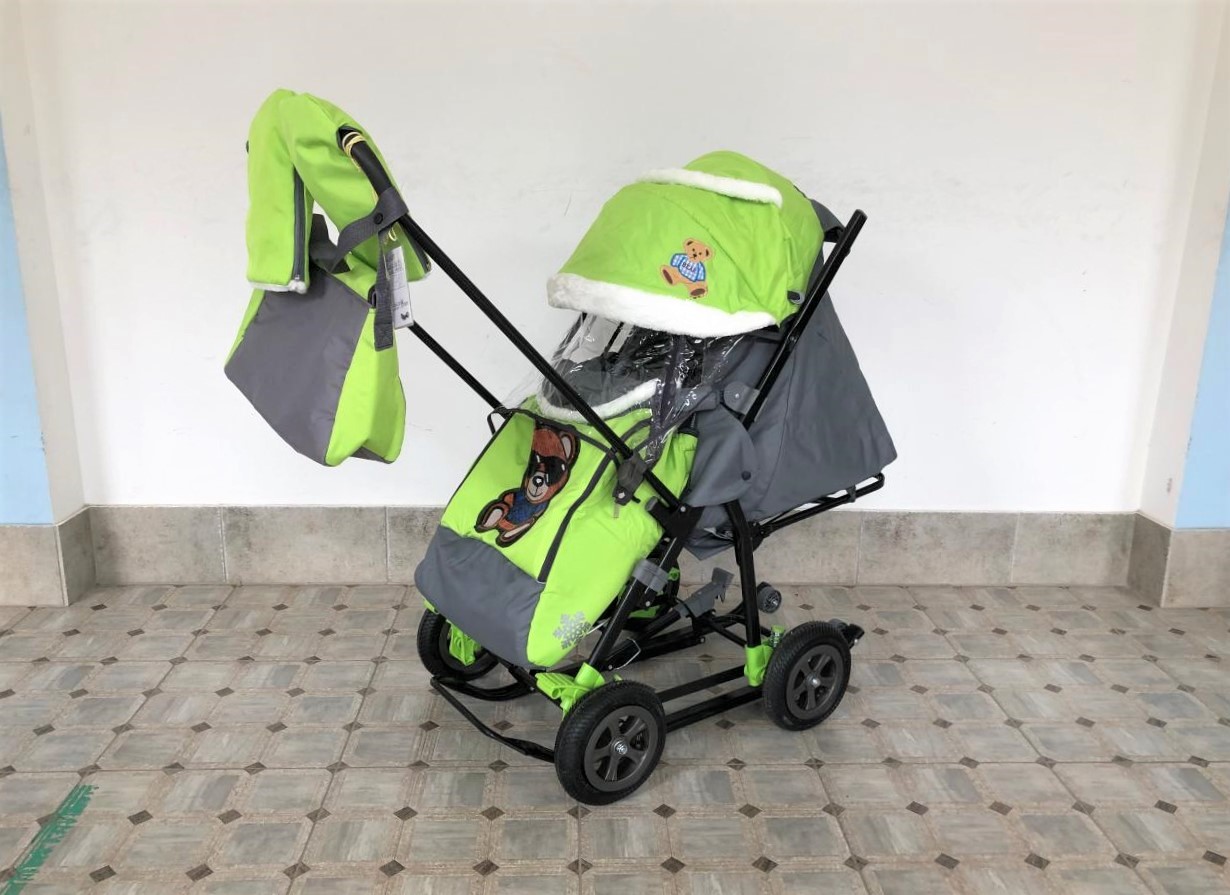 - Замечательные саночки со светоотражающими элементами. Красивая меховая окантовка. Ветровик имеет две молнии по бокам, как и чехол на ножки. Для быстрого доступа к ребенку. У данной модели колеса надувные с пружинными амортизаторами. Они хорошо поглощают вибрацию от неровностей на дороге. Санки складываются. Ручка перекидная. Цвет: салатовый. Цена