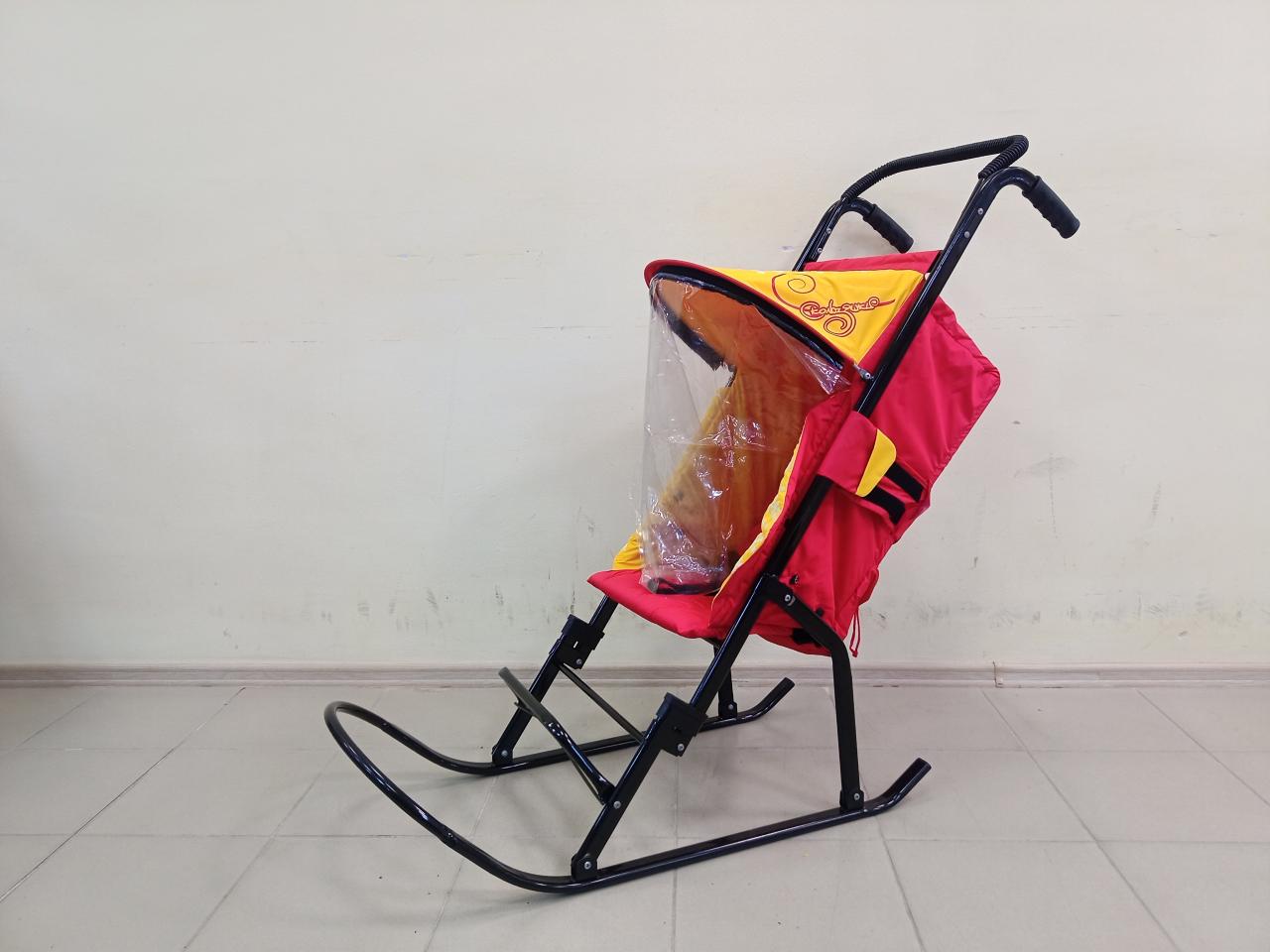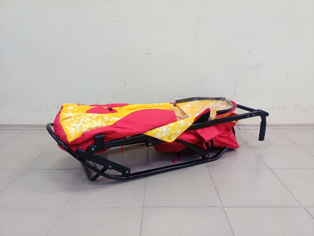 - Яркие саночки российского производства. Накидка на ножки в комплекте. Цвет: желтый с красным. Цена