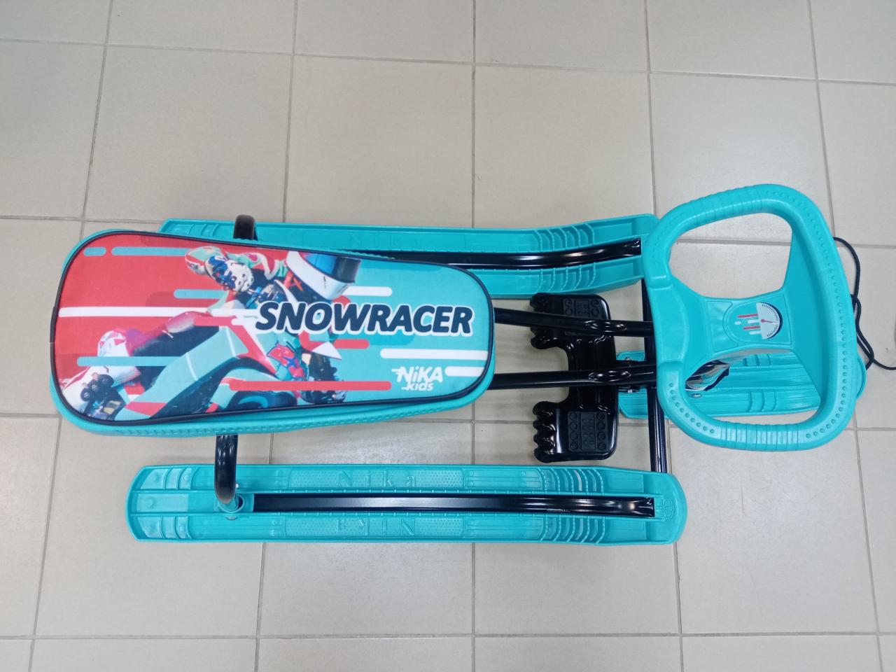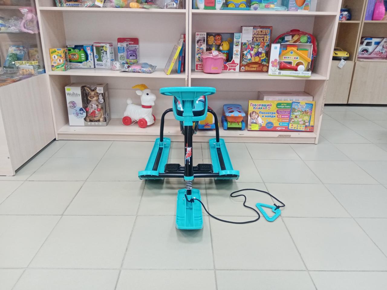 - Снегокат для самых маленьких пассажиров. Лёгкая модель с велорулём и спинкой. Есть ремешок безопасности и ножной тормоз. Производитель Пермь. Цена всего